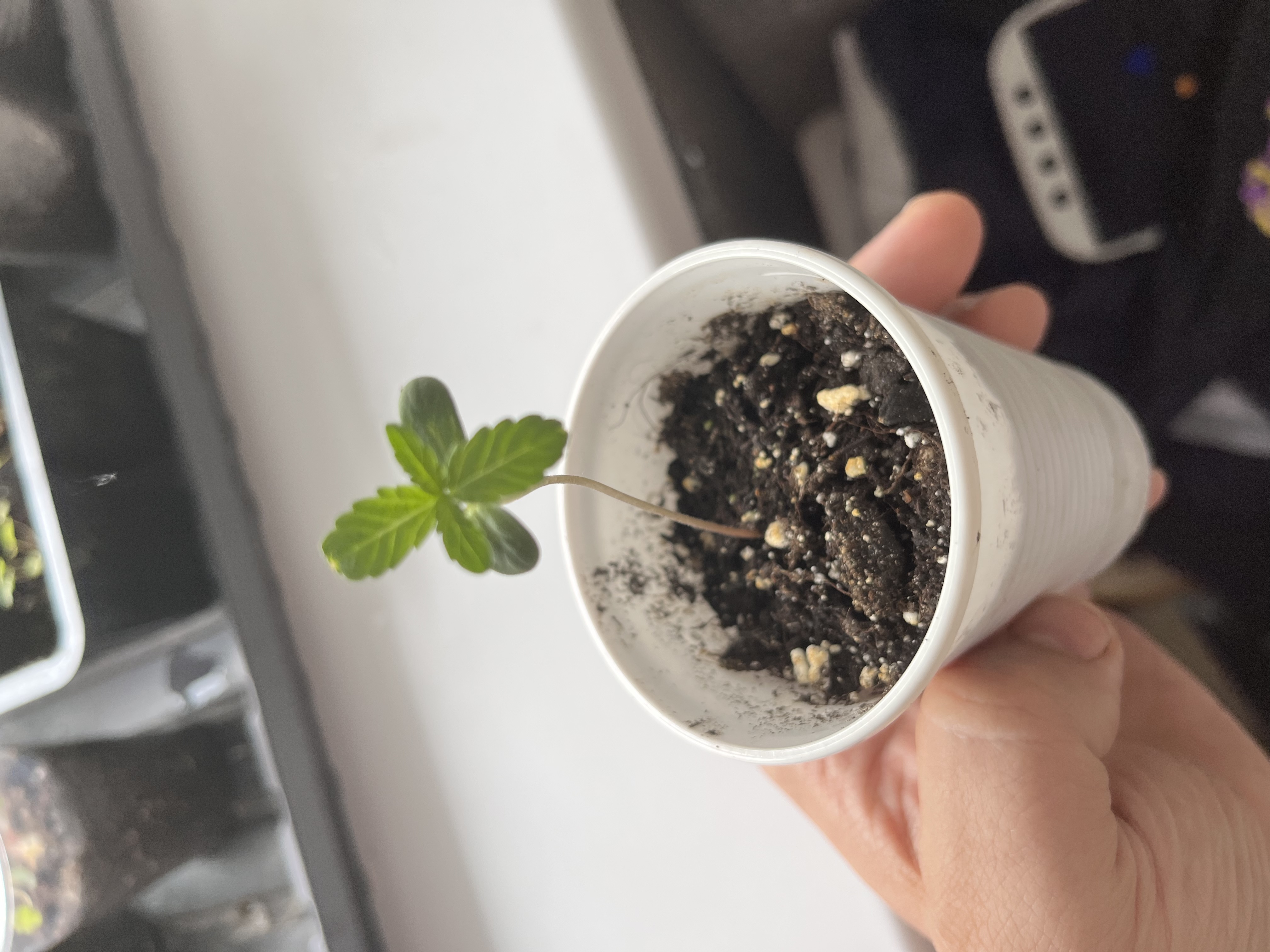 Пока растём - из трёх семечек - прорасли три))(