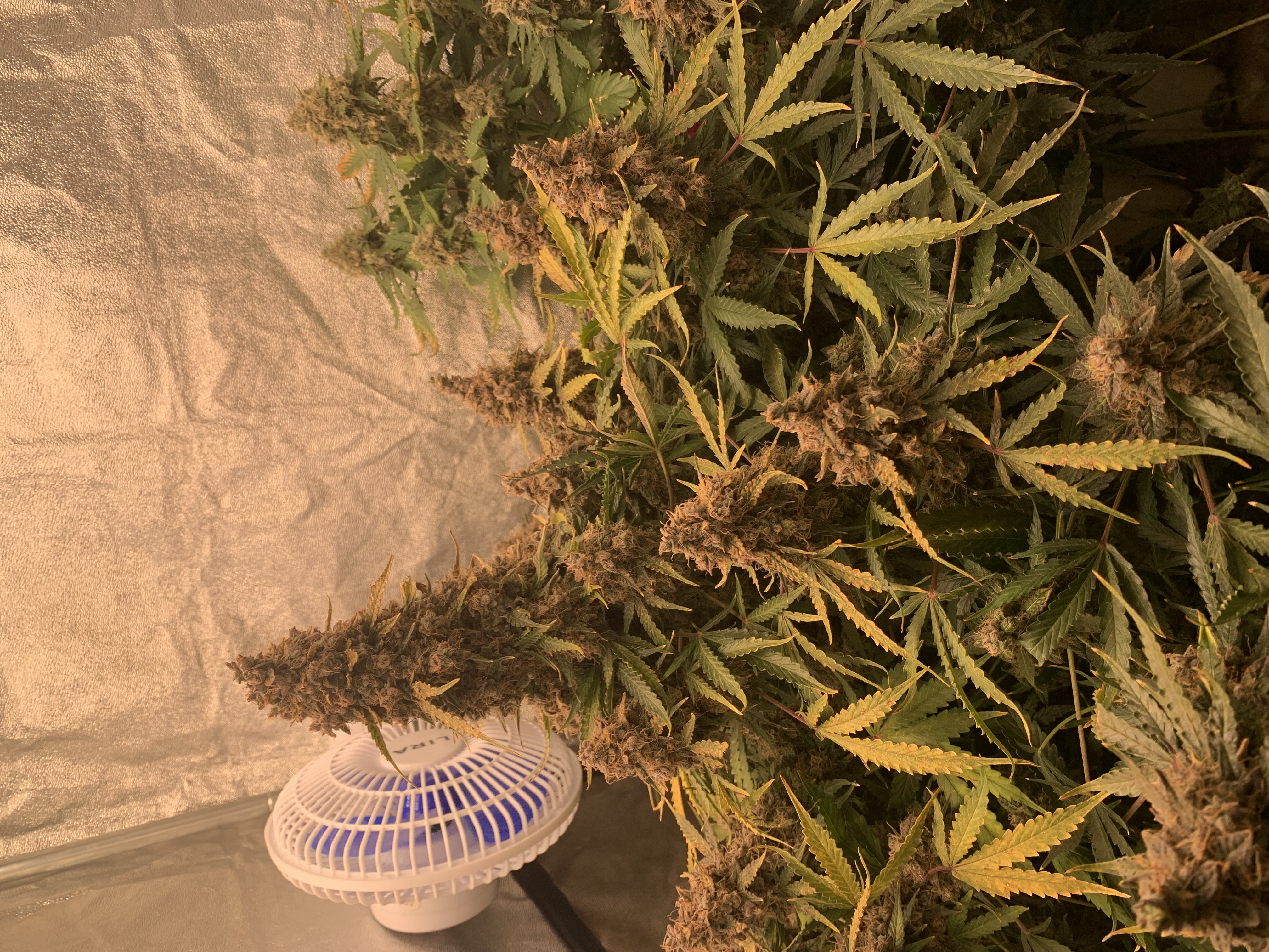 Прошел ещё один месяц моего грова. Сегодня 94 день. Куст ещё зеленый, без единого желтого листика, трихомы прозрачные, цветы набирают массу. Были передозы удобрами, теперь чередую поливы обычной водой. Запах сладкий умеренный, до настоящего момента еду без фильтра ( фильтр есть ), главное проветривать помещение. Начал давать Overdrive, как выяснилось рано, тяжело поймать момент за две недели до харва. Куст конечно крутой будет по выхлопу, надеюсь эффект порадует. Харвест тоже покажу - он уже не за горами. Несмотря на долгий срок созревания, генетикой я доволен. Всем 4:20!! Гроверзу респект